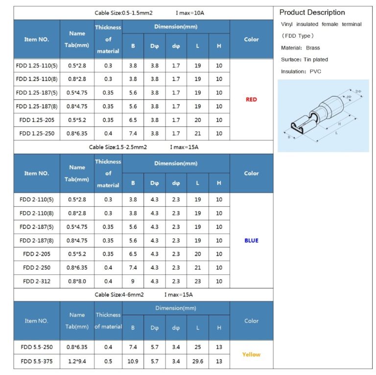 FDD vinyl insulated female terminal