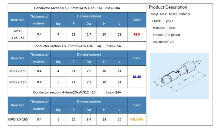 12.A.W.G.(USA standard) : 22-16 / 16-14 /12-10